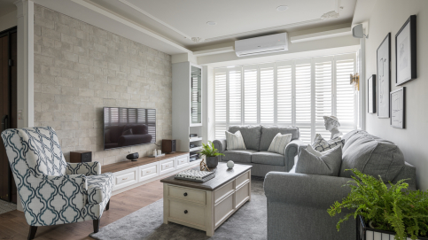 楊詩韻設計師在不動格局的情況下,設計出別具風情的正四房美式輕奢華空間,不僅考量到風水,連收納機能也一應俱全。